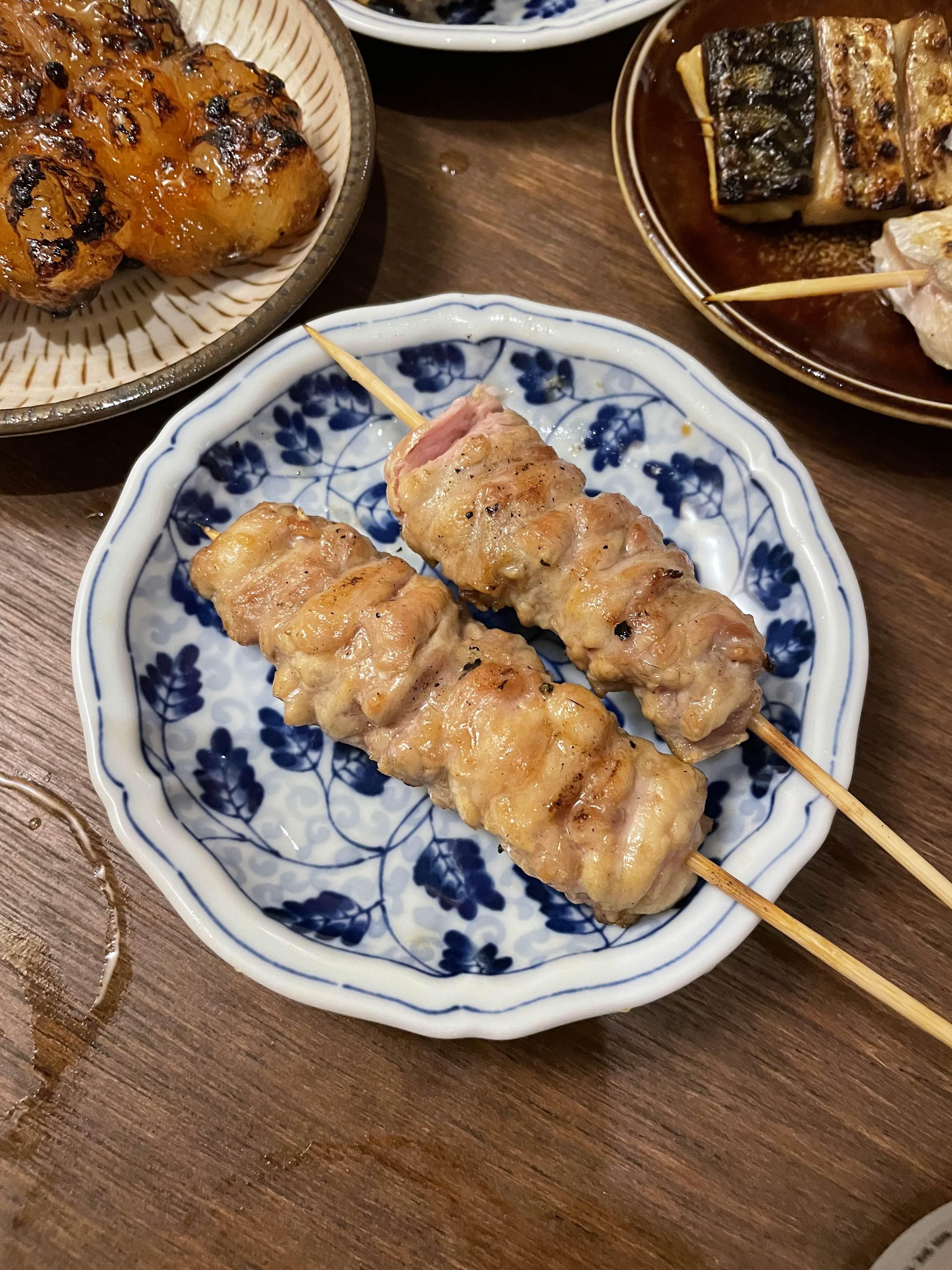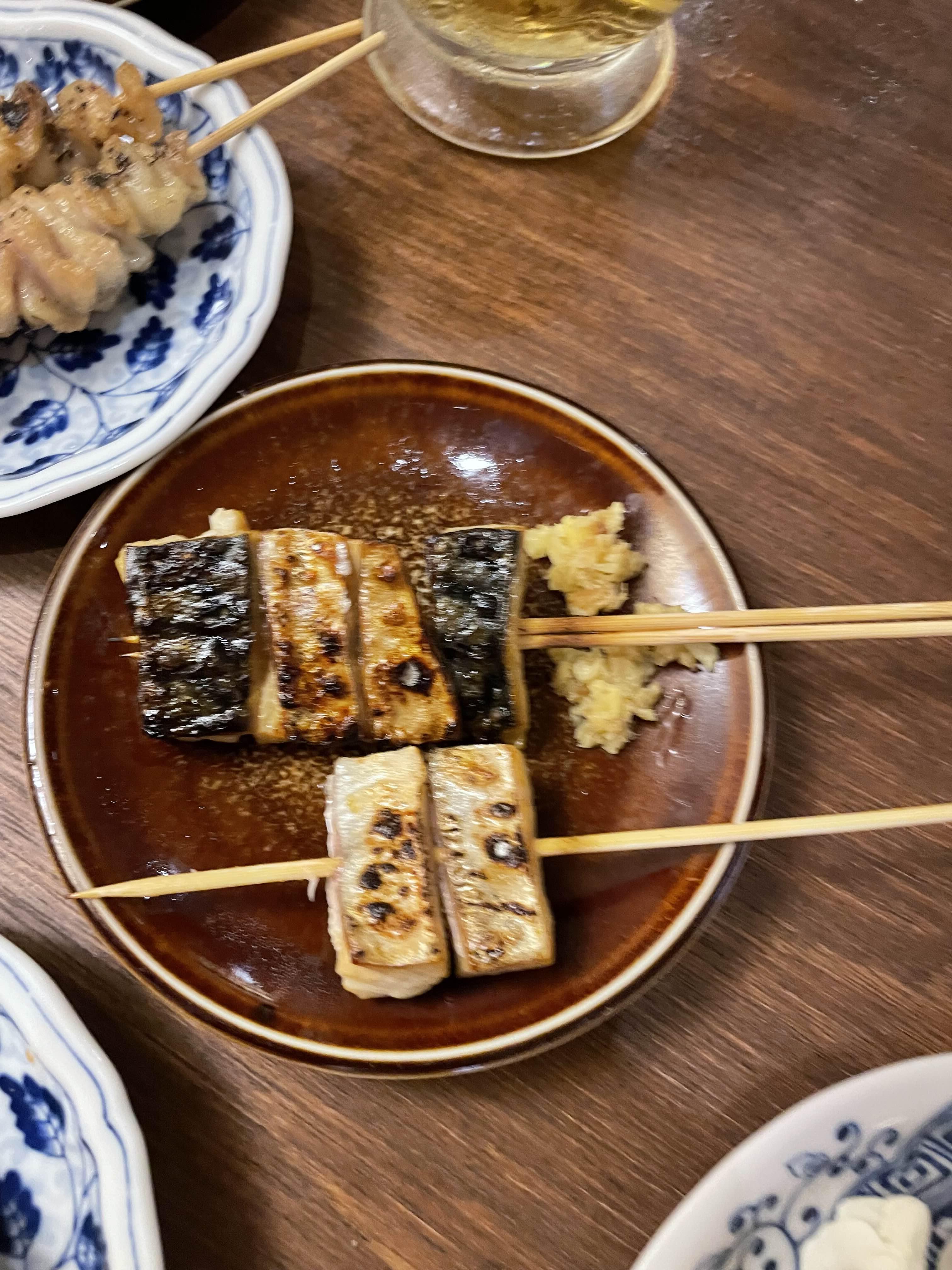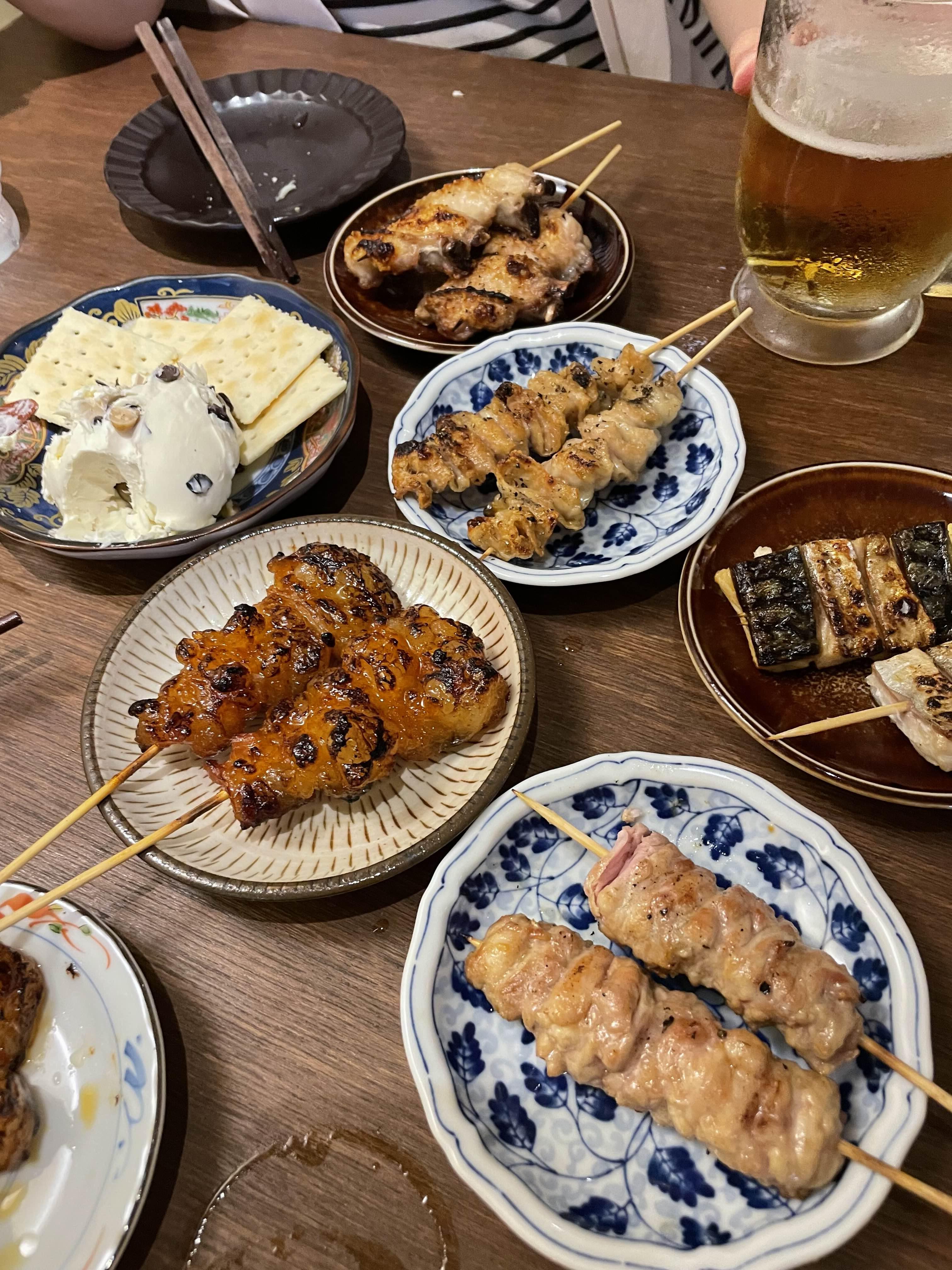 야키시바(고등어) 7,600원 / 테바(날개) 7,600원 / 호르몬(대창) 9,800원 등 꼬치는 2개씩 각 각 다른 접시에 나옵니다. 친구들이 크림치즈크레커도 시켰는데 계속 손이 가는 맛이었습니다. 약간 비싼거 같긴하지만.. 용산물가 다른 곳보다 더 비싸니 그냥 먹어봤습니다.